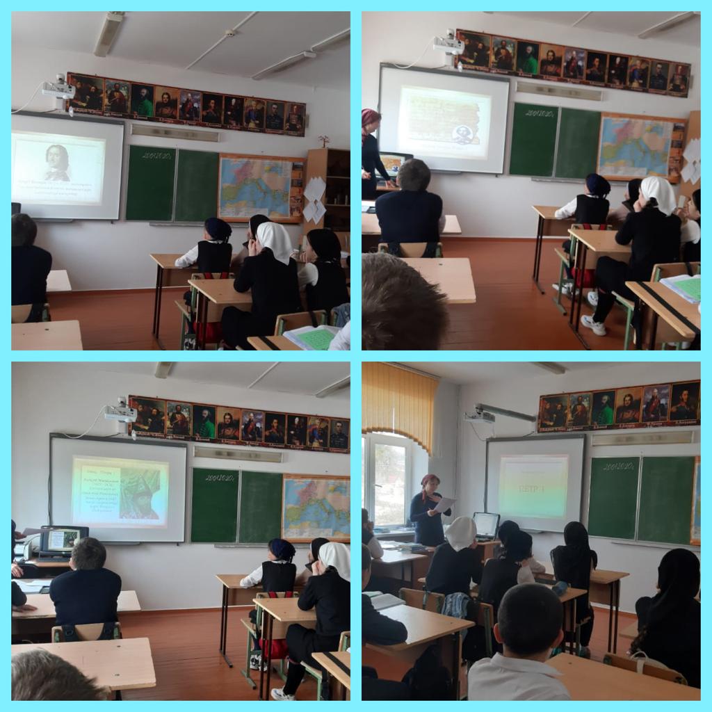 Заместитель директора по ВР и учитель истории текоева З.Ю. рассказала ребятам о жизни Петра I, о его детстве, его родословной. Раскрыть эту тему помогла презентация «Петр I Великий». Также дополнила об интересных фактах детских и юношеских годов будущего императора. О том какие государственные преобразования произошли в период его правления, а также о военных походах и победах русской армии под командованием Петра. Охват 28 человек.