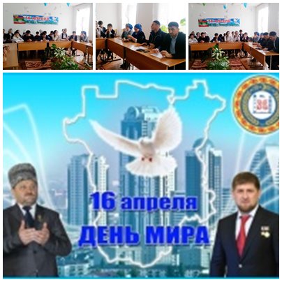 16.04.20167 лет со дня отмены КТО на территории Чеченской Республики. В этом году исполняется семь лет со дня отмены контртеррористической операции на территории Чеченской Республики. Отмена КТО была очередной победой в деятельности Главы Чеченской Республики Рамзана Ахматовича Кадырова. День 16 апреля 2009 года для чеченского народа стал символической датой - Днем мира и созидательного труда. 15 апреля в актовом зале МБОУ «СОШ с.Булгат-Ирзу им. Х.А.Арзамиева» прошел круглый стол «Мы за мир!» в котором принимали участие учащиеся 8-11 классов, имам села и учителя СОШ.