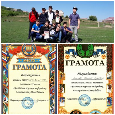 06.05.20176 мая в СОШ с.Согунты прошел районный турнир по футболу, посвященный Дню победы. В турнире приняло участие 4 команды. Команда нашей школы заняло 3 место в этом турнире, обыграв команду СОШ с.Беной-Ведено. Ученик 9 класса Висалиев Ибрагим признан лучшим вратарем по итогам игры.