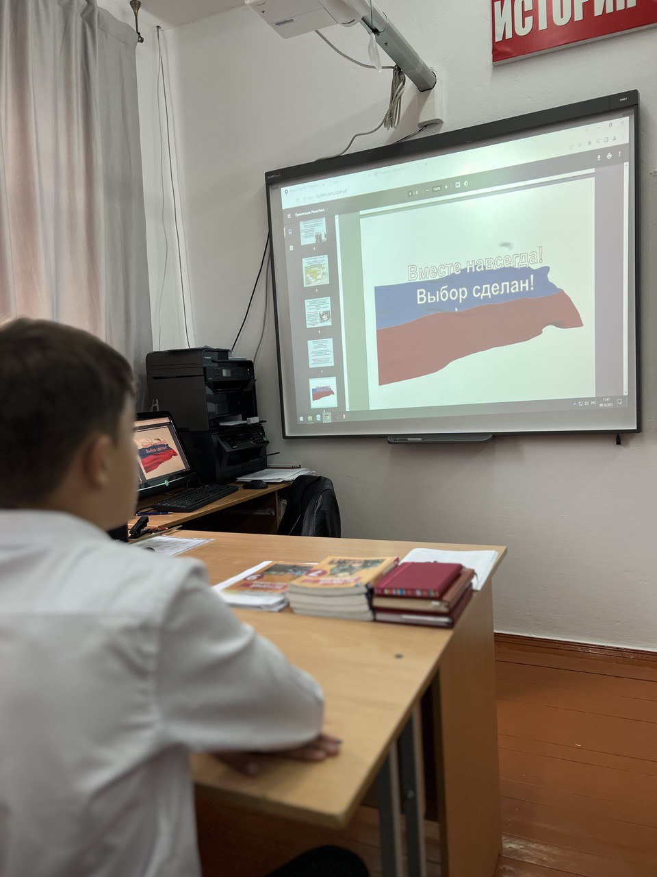30.09.202330 сентября в нашей стране отмечается новая памятная дата - День воссоединения ДонецкойНародной Республики, Луганской Народной Республики, Запорожской области и Херсонской области с Российской Федерацией. Год назад жители этих территорий на референдумах приняли решение о присоединении к России.К этой дате в МБОУ «СОШ с.Булгат-Ирзу им.Х.А.Арзамиева» при взаимодействии с отделом в Ножай-Юртовскомрайоне УФСБ России по Чеченской Руспублике проводились познавательные, тематические, исторические часы и беседы.В МБОУ «СОШ с.Булгат-Ирзу им.Х.А.Арзамиева» прошёл информационный час «Пока мы едины - мы непобедимы!». Ребята с интересом слушали рассказ об истории самого молодого праздника России, рассуждали о том, что нам всем необходимо поддерживать и помогать жителям новых российских регионов.