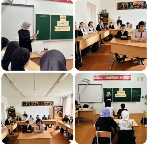 27.01.202427 января советником директора по воспитанию МБОУ « СОШ с.Булгат-Ирзу им. Х.А.Арзамиева» Ильясовой М.Н. проведен урок мужества «Память о Холокосте», посвящённый Международному дню памяти жертв Холокоста, который по инициативе ООН ежегодно отмечается 27 января. Обучающиеся 7 класс познакомились с историей Холокоста, узнали о том, что концентрационные лагеря – одни из самых страшных творений фашистов, увидели весь ужас испытаний, выпавших на долю взрослых и детей в лагерях Освенцим, Бухенвальд, Дахау и др. Так же для ребят была организована виртуальная экскурсию по крупнейшему лагерю смерти Аушвиц- Биркенау (Освенцима) В ходе мероприятия был сделан вывод, что знание уроков Холокоста необходимо, прежде всего, для того, чтобы подобная трагедия не повторилась когда-либо на Земле. В завершение мероприятия учащиеся почтили память погибших от рук фашистов минутой молчания.
