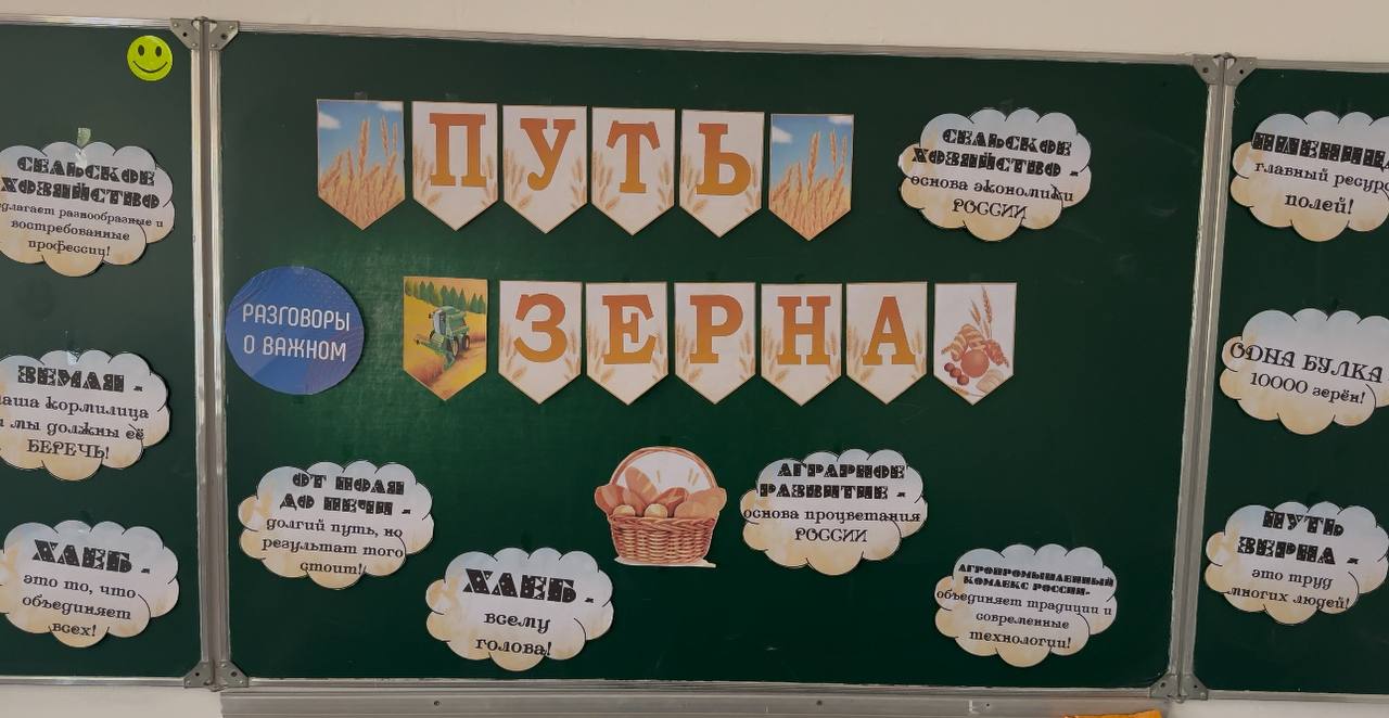 23.09.2024В понедельник, 23 сентября 2024 г, в нашей школе прошел четвертый в этом учебном году урок «Разговоры о важном», он получил название «Путь зерна». Путь зерна от посева до выпекания хлеба – это сложный процесс, включающий труд многих людей. В маленьком кусочке хлеба большая работа многих людей. Ученики узнали не только о зерновых культурах и главных регионах-житницах России, но и о происхождении различных культур, а также этапах производства зерна: посеве, росте и уходе, уборке созревшего урожая, переработке, хранении и транспортировке.