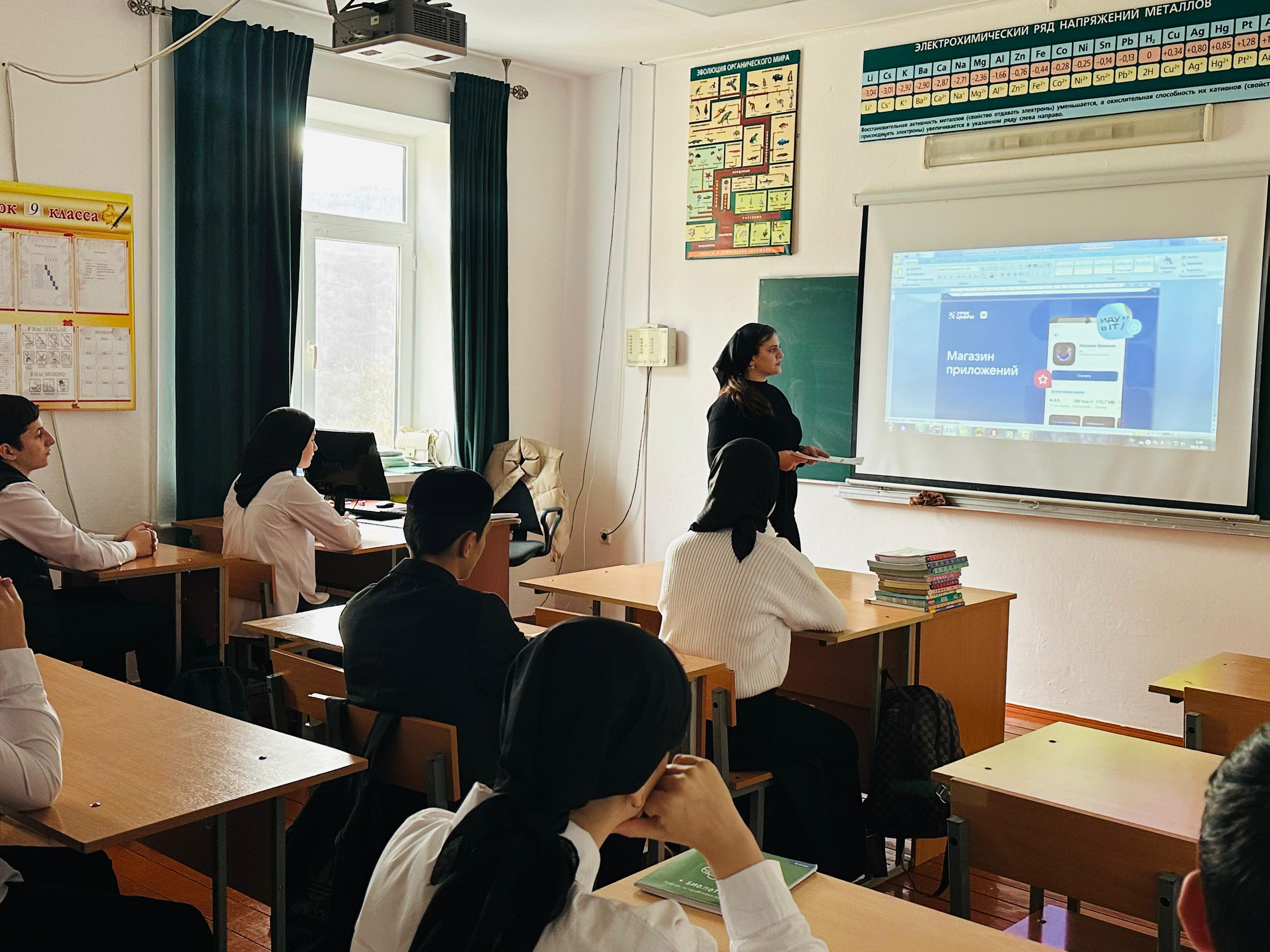 Обучающиеся МБОУ «СОШ с. Булгат-Ирзу им. Х. А. Арзамиева» принимают активное участие в уроке цифры по теме «Магазин приложений». Уроки проходят в формате игры, где ученики выступают в роли владельцев магазина приложений и управляют им. Ребята решают задачи, связанные с разработкой, продвижением и популярностью магазина, и изучают профессиональные роли сотрудников IT-отдела. Всё происходит в вымышленном мире, где участники урока выполняют задания и принимают решения, влияющие на успех их виртуального бизнеса. Они управляют доходами и расходами, решают маркетинговые вопросы и занимаются рекламой, учитывая потребности целевой аудитории.