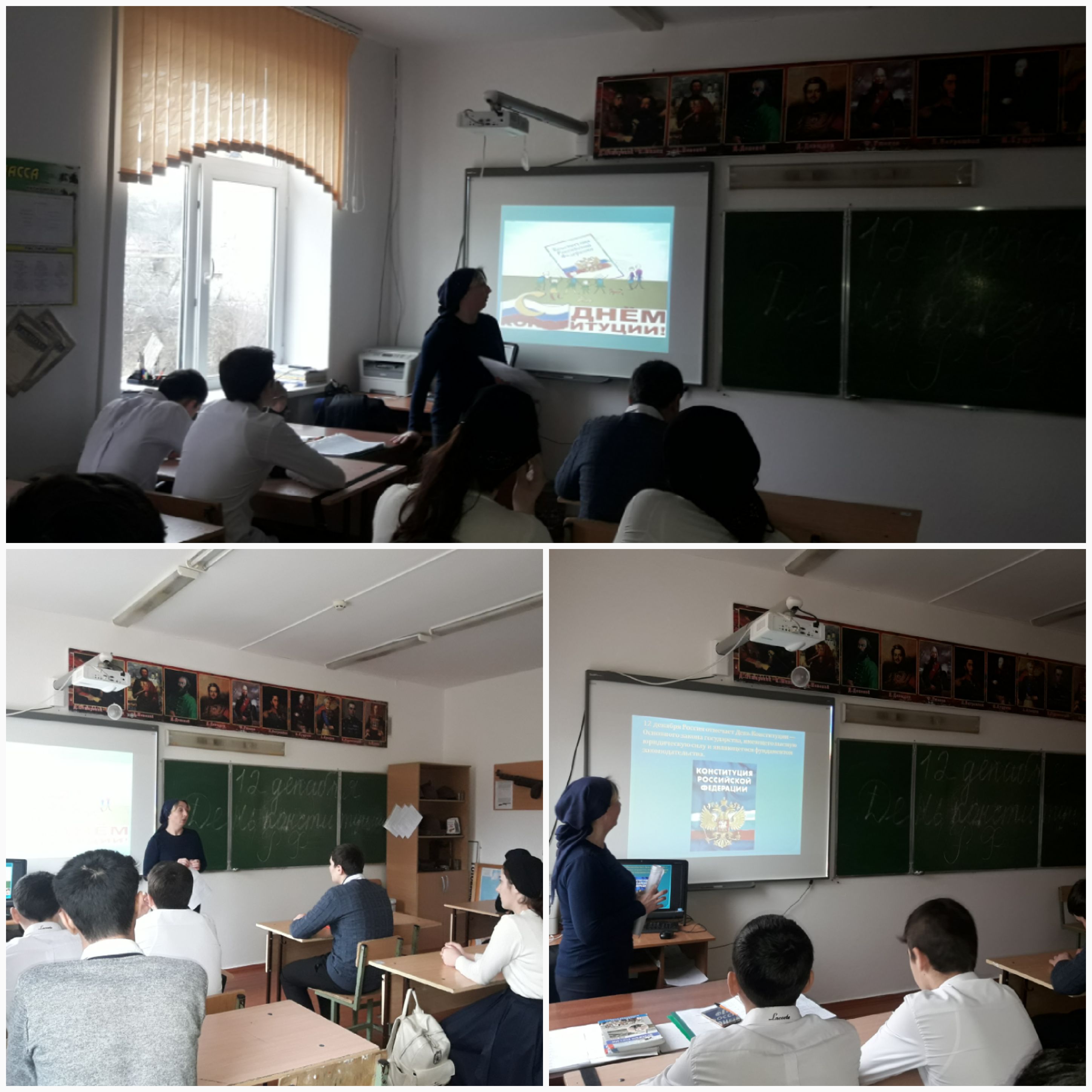 12.12.201812 декабря с целью гражданского и патриотического воспитания в День Конституции Российской Федерации в МБОУ "СОШ с.Булгат-Ирзу им. Х.А.Арзамиева" прошло мероприятие с обучающимися 7-9 класса. Для них была организованна интеллектуальная игра-викторина, посвящённая принятию основного документа Российской Федерации 1992 года. Обучающиеся отвечали на вопросы викторины в режиме «мозгового штурма» за 1 минуту, разрешали проблемные ситуации правового характера. Хочется отметить, что такая форма проведения мероприятия хорошо организовывала и обучала взаимодействию обучающихся в командах разновозрастного состава, способствовала освоению разных форм извлечения и оформления информации.