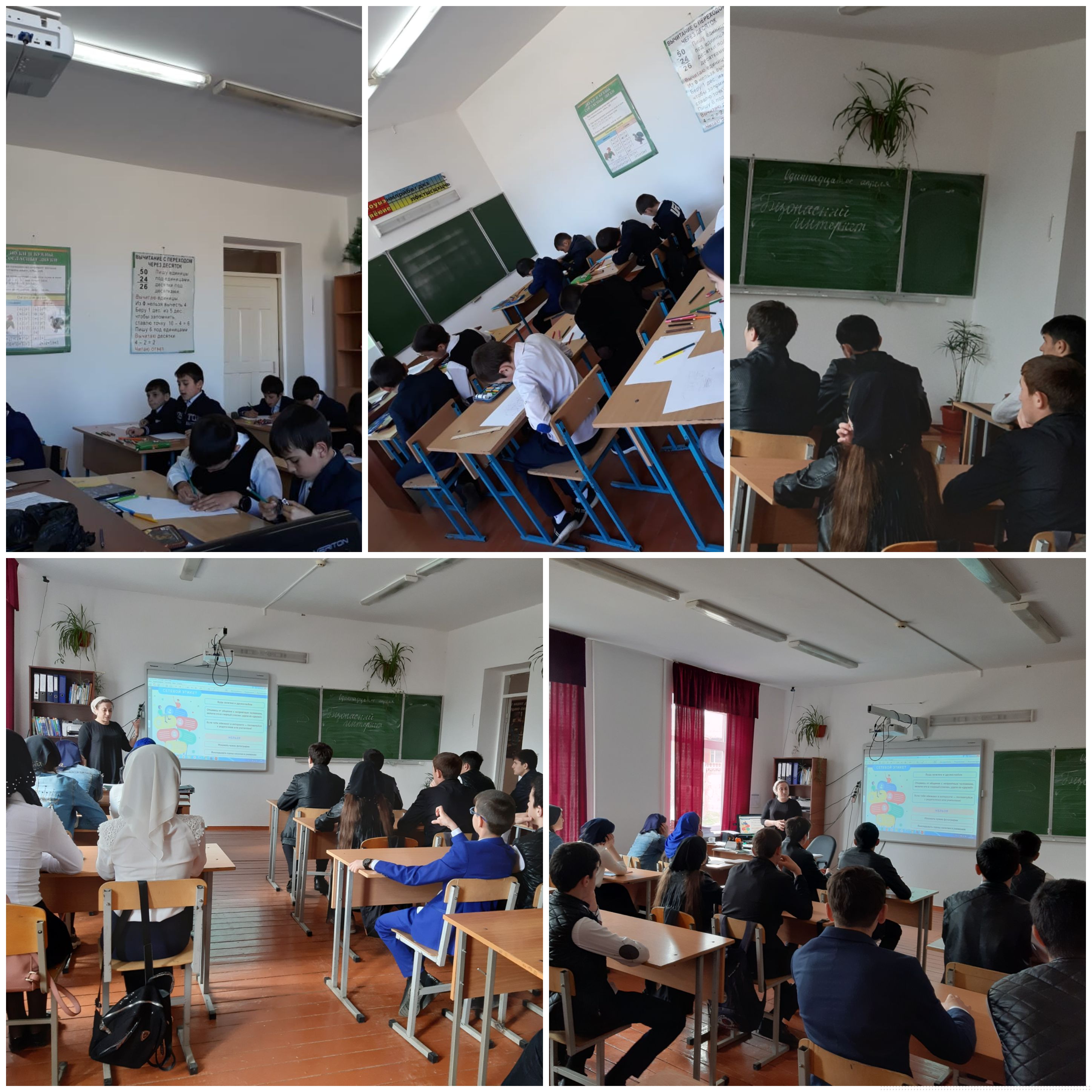 Учащиеся начальных классов принимали участие в конкурсе рисунков, учащиеся старших классов писали эссе на тему «Безопасность в сети интернет»